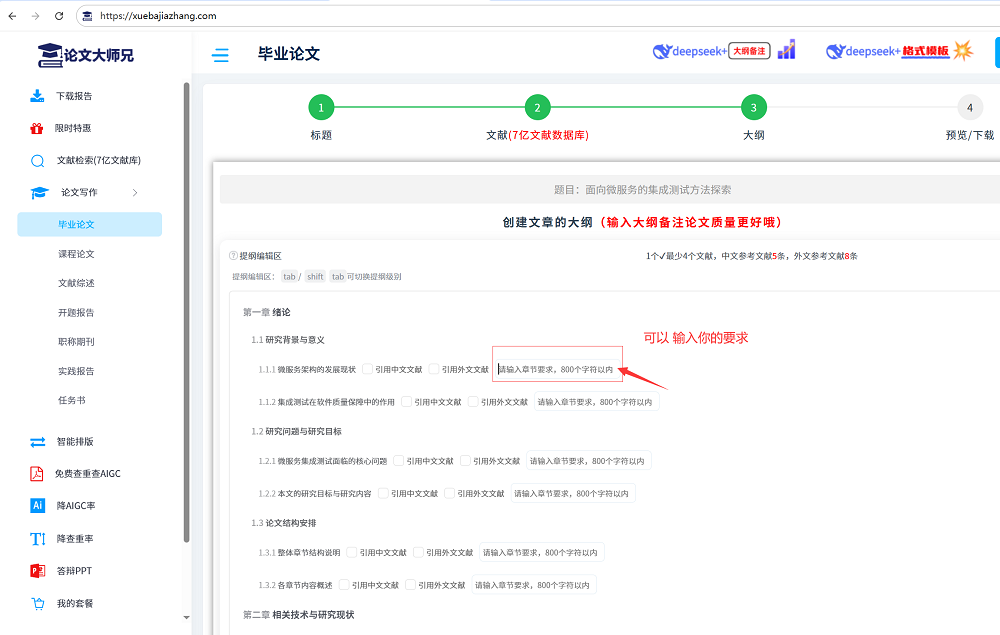 第1步:在电脑浏览中 打开论文大师兄官网 https://xuebajiazhang.com,输入 论文题目,勾选相关选项